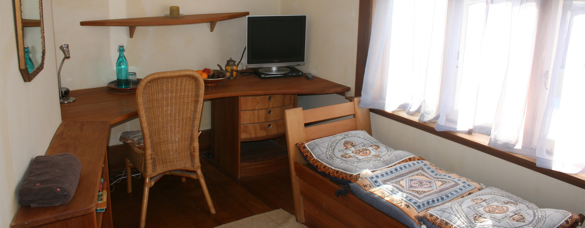The Den is on the top floor. It is a simple good value single room that gets the early morning sun. The Villa Room has its own balcony, and great views over the city. Guests staying in the main house will have their breakfasts included.